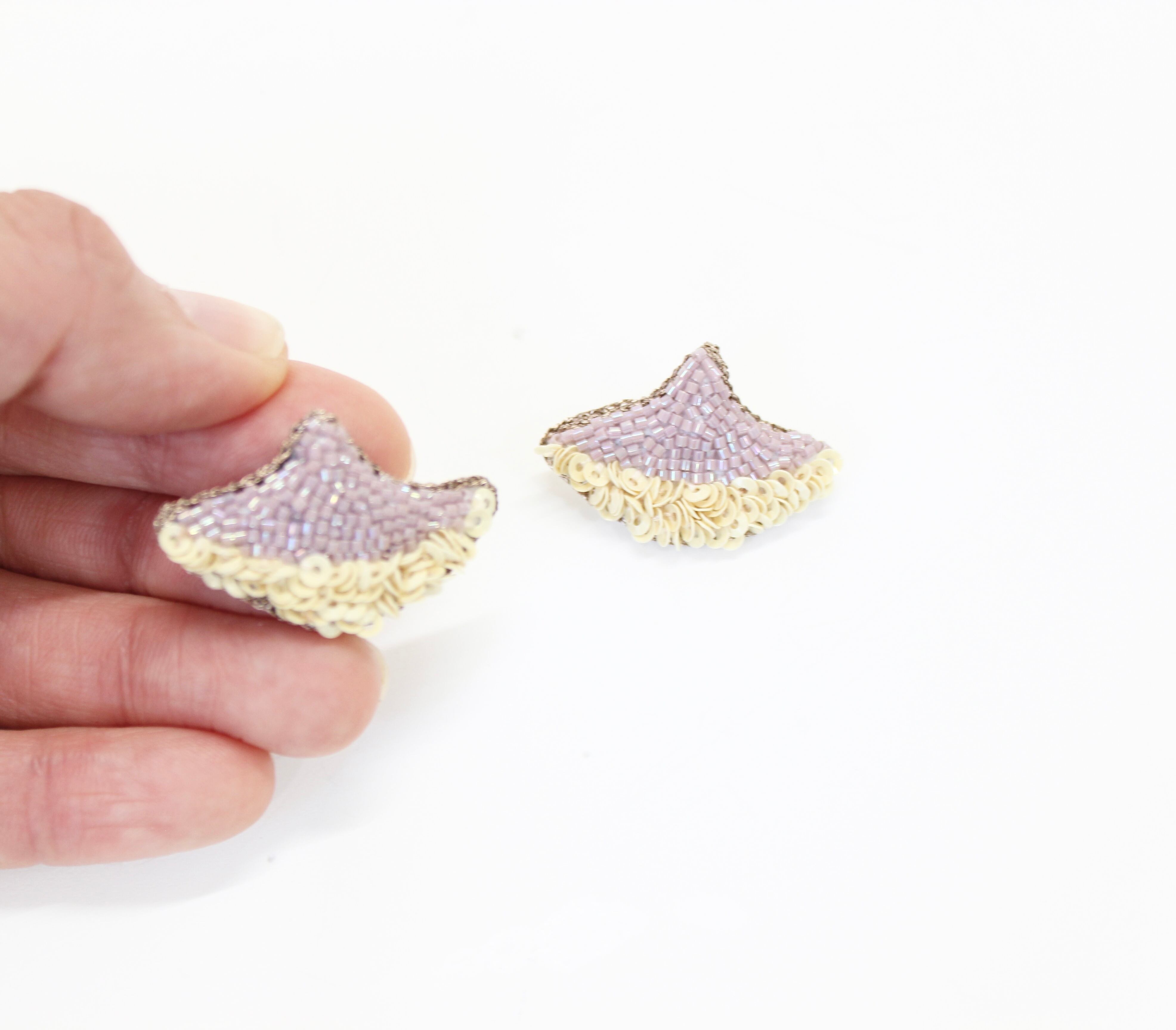 ビーズやスパンコールは一粒ずつ縫い付けているため、ひとつとして同じ表情になりません。